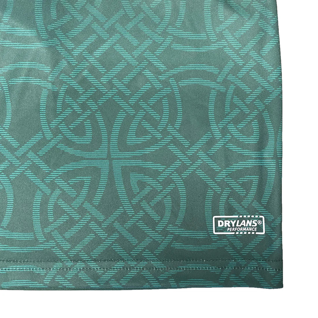 This Lansdowne Ireland Celtic Performance 1/4 Zip Top features a predominantly green design with intricate Celtic knot patterns on the front and includes white shoulder panels, a quarter-zip collar, and the Ireland crest on the left chest, making it a must-have top for fans of Irish heritage and sports.