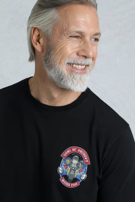 Whether you are a biker or not, you will love our Sons of Anchovy Back Print Artist T-Shirt. Based on the long running show, our Weird Fish take has a vintage wash for a lived-in look and feel.